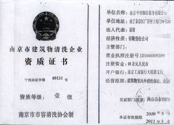 南京保潔公司注冊資金10萬元,是江蘇省家庭服務(wù)協(xié)會會員單位,江蘇省家政服務(wù)業(yè)分類執(zhí)行標準起草制定單位,先后被評為江蘇誠信服務(wù)先進單位、南京是家政服務(wù)定點培訓單位、南京市十佳建筑物清洗企業(yè)、南京市誠信示范單位、南京市鼓樓區(qū)三信三優(yōu)單位。董事長康朋是江蘇省家庭服務(wù)業(yè)協(xié)會副會長、江蘇省家政服務(wù)分類執(zhí)行標準主要起草人。